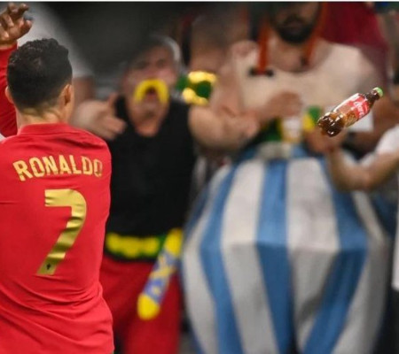 O craque Cristiano Ronaldo foi atingido por uma garrafa de Coca-Cola arremessada por torcedores, durante a partida entre Portugal e França pela Eurocopa , na última quarta-feira (23).