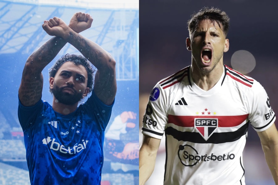 Gabi e Calleri, os camisa 9 dos seus clubes, Cruzeiro e São Paulo, que se enfrentam hoje | (Foto: Reprodução/X)