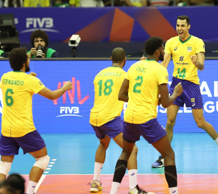 O Brasil levou um susto no primeiro set, mas mostrou a força do seu conjunto e venceu mais um jogo na Liga das Nações – o 14º em 15 disputados. Neste domingo (30), a seleção brasileira masculina de vôlei passou pela Itália por 3 sets a 1, de virada, com parciais de 26/28, 25/22, 25/18 e 25/18, na despedida da torcida brasileira, diante de 9.500 pessoas.