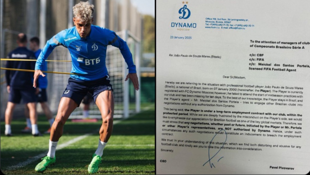"O Jogador está atualmente inscrito no FC Dínamo Moscou; no entanto, ele não compareceu ao início dos treinos de meio de temporada com nosso clube e está desaparecido há dez dias.