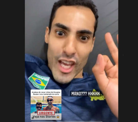 Douglas Souza, atleta de vôlei do Brasil, usou os seus stories do Instagram para desmentir uma notícia falsa que dizia que um vídeo íntimo do atleta com o namorado teria vazado. O fenômeno da internet tirou sarro da situação, negou, claro, mas ironizou dizendo que não seria uma má ideia. O jogador gravou os stories após a vitória suada do Brasil sobre a França.