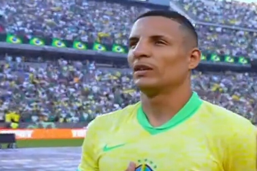 Veja o momento em que o jogador foi flagrado pulando parte do hino nacional brasileiro