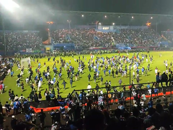 Após a derrota de 3 a 2 do Arema FC para o Persebaya Surabaya, duas equipes locais, torcedores do primeiro time invadiram o gramado para criticar os jogadores e dirigentes do clube. A polícia tentou controlar a multidão com violência, mas as agressões levaram mais torcedores a tentarem fugir pelo gramado.
