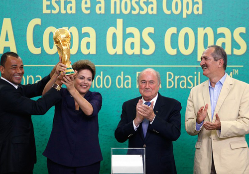 Durante a cerimônia em Brasília, Joseph Blatter Fifa fez uma entrega simbólica da taça da Copa à presidente Dilma Rousseff, em um momento que o próprio dirigente classificou como histórico.