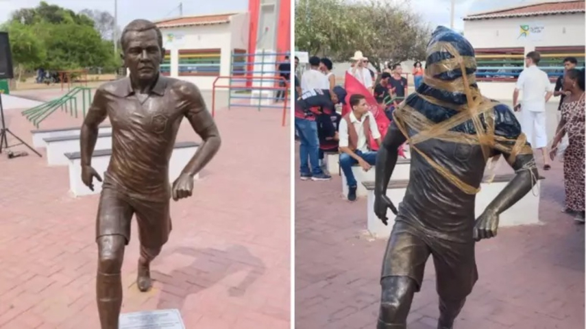 Uma estátua do jogador Daniel Alves, no município de Juazeiro, na Bahia, está sendo alvo de vandalismo pelos moradores. As ocorrências se intensificaram após o atleta ter sido condenado pelo estupro de uma jovem em Barcelona, em 2022. A sentença foi dada na última quinta-feira (22), na Espanha.