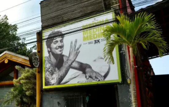 Quem atravessa Maresias pela sua via principal, a pista da Rodovia Rio-Santos, só vê duas referências ao seu filho mais pródigo. Em uma esquina, um banner novo com uma foto de Gabriel Medina tricampeão mundial promove uma loja de surfwear. Na outra, vizinha, um prédio vazio tem duas placas. Uma, do Instituto Gabriel Medina, quase apagada. A outra, um anúncio de vende-se.