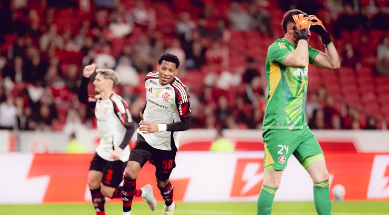 O Flamengo venceu o Internacional por 3 a 1 neste domingo, no Beira-Rio, chegando a 43 pontos e ampliando a liderança do Campeonato Brasileiro. O Inter permanece com 24 pontos, na parte baixa da tabela.
