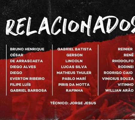 A boa notícia é a presença do uruguaio Arrascaeta, que precisa ganhar ritmo para a decisão da Libertadores e está relacionado. A tendência é que o camisa 14 inicie entre os titulares.