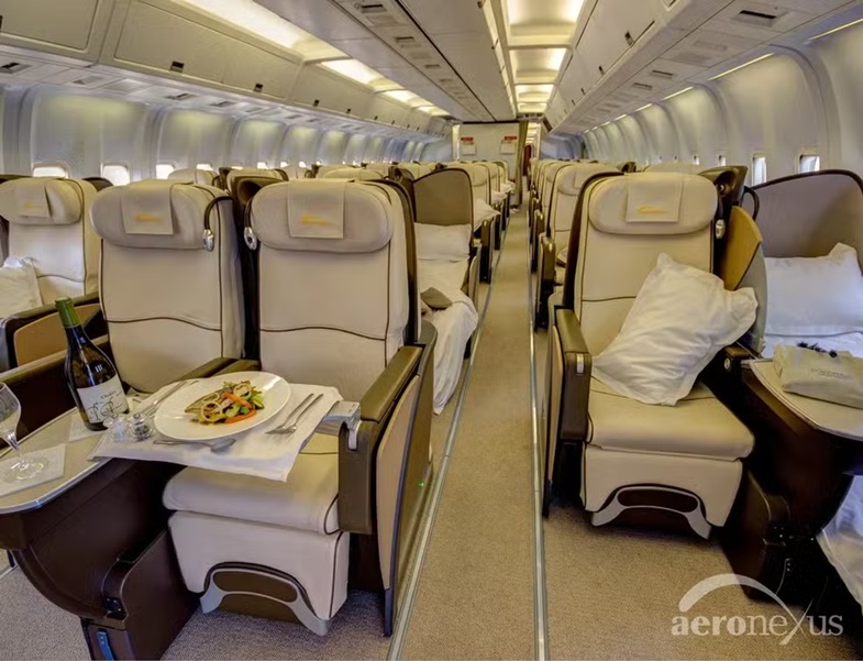 O clube escolheu esse avião para assegurar que os jogadores possam dormir de forma confortável durante o voo. Todos os lugares são totalmente reclináveis e revestidos em couro, em configuração de seis assentos por fileira.