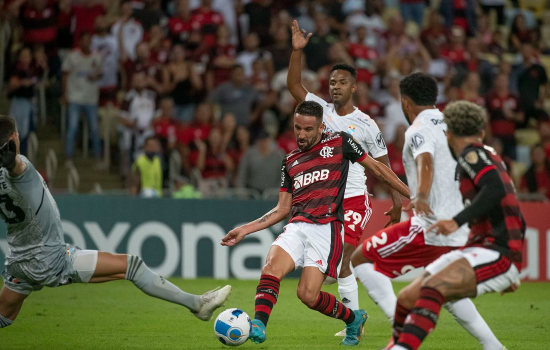 O panorama da partida só mudou no decorrer da etapa final, quando o técnico Paulo Sousa colocou em campo Bruno Henrique, Rodinei e Andreas Pereira, que teve participação direta no segundo gol. Aos 28 minutos o camisa 18 cobrou falta na direção da área e o centroavante Pedro subiu muito para cabecear com categoria.