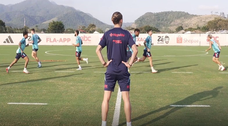 Filipe Luís comandou último treino do Flamengo para o duelo contra o Mirassol | Foto: Reprodução TV Fla