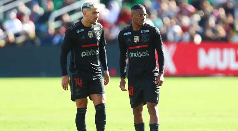 Arrascaeta e De La Cruz durante jogo do Flamengo pelo Brasileirão | Foto: Gilvan de Souza - CRF