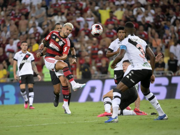 Aos 26, Arrascaeta teve espaço na entrada da área para aproveitar o rebote da defesa do Vasco e, em um chutaço de primeira, estufar a rede adversária. O gol esquentou o clássico, com os times de Vítor Pereira e Maurício Barbieri indo para cima. E sobraram espaços e erros no campo defensivo.