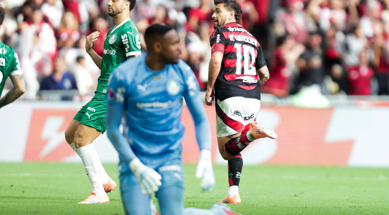 O empate do Palmeiras veio logo na sequência: Vitor Roque aproveitou cruzamento preciso de Khellven e marcou de cabeça, em momento em que a defesa rubro-negra ainda se reorganizava após Léo Ortiz deixar o campo lesionado.