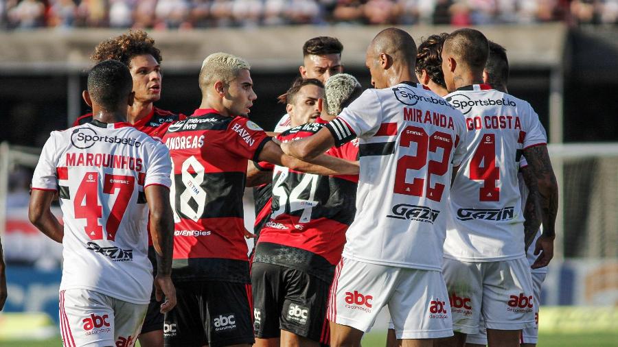 O provável São Paulo tem Jandrei, Rafinha, Diego, Léo e Wellington; Pablo Maia, Rodrigo Nestor, Gabriel Sara (Igor Gomes) e Alisson; Eder e Calleri.