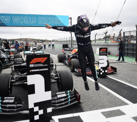 Lewis Hamilton é o recordista absoluto de vitórias na história da Fórmula 1. Neste domingo, o inglês da Mercedes venceu o GP de Portugal e, com o 92º triunfo na categoria, superou as 91 vitórias de Michael Schumacher. O inglês terminou com segundos de vantagem sobre o companheiro de equipe Valtteri Bottas, que acabou em segundo. Max Verstappen (RBR) fechou o pódio, em terceiro.