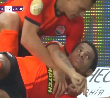 Já no segundo tempo do duelo diante do Zorya, Taison foi atingido na cabeça pelo próprio companheiro e compatriota Ismaily. Caído no gramado, ele começou a convulsionar numa cena assustadora, deixando todos os jogadores preocupados.