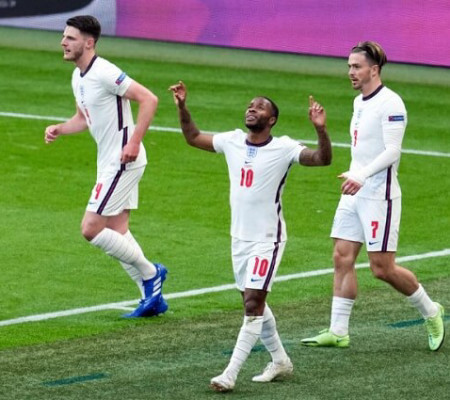 Inglaterra: Pickford; Walker, Stones, Maguire, Shaw; Rice, Phillips; Saka, Mount, Sterling; Kane