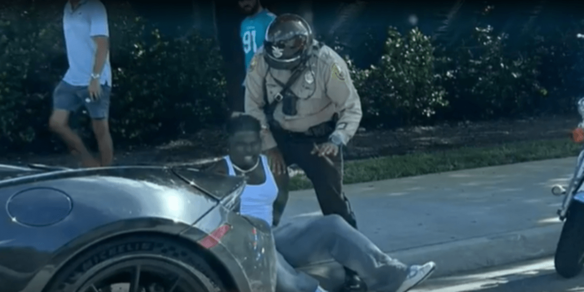 Tyreek Hill sendo preso por policiais próximo ao estádio onde joga | (Foto: Reprodução)