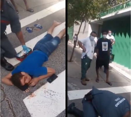 Na internet, um vídeo mostra Luiz Adriano, após o acidente, aguardando o atendimento da vítima.