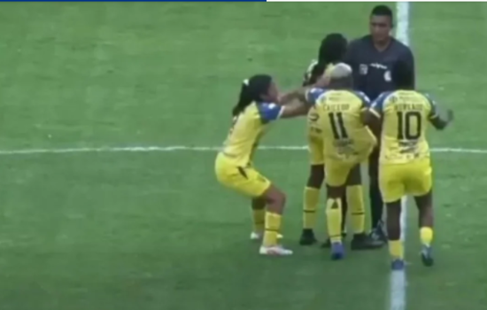 Ocorre que ela ainda chutou a bola em direção ao árbitro que não gostou de sua atitude e foi além. Agrediu com um chute em suas partes íntimas e deixou o árbitro indignado com sua atitude. Veja vídeo!