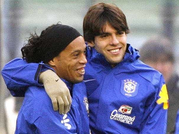 Kaká e Ronaldinho Gaúcho dividiram o vestiário da Seleção Brasileira nas Copas de 2002, sendo pentacampeões mundiais, e em 2006.