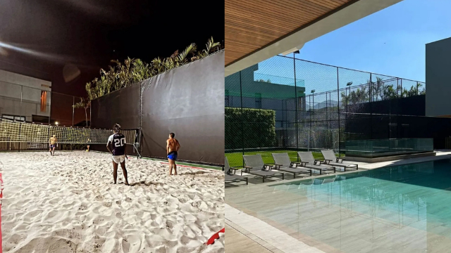 No entanto, na terça-feira (27), ao retornar ao Brasil, Vinícius não estava interessado em descansar da viagem, mas queria era diversão. Ele imediatamente aproveitou para estrear a piscina, compartilhando uma foto em suas redes sociais. À noite, foi a vez de testar a quadra de areia, que pode ser usada tanto para o beach tênis quanto para o futevôlei, a escolha do momento.