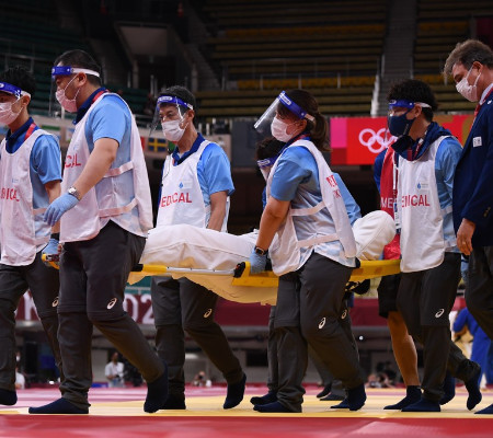 Ele precisou ser levada de maca para fora do tatame e foi encaminhada ao hospital para passar por exames e não voltará mais para as disputas