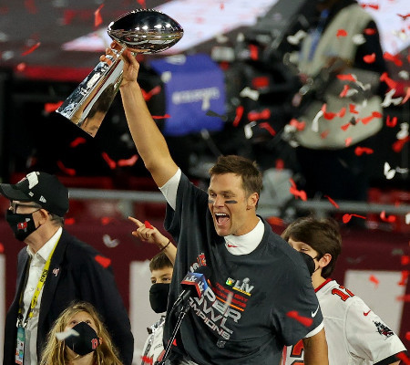 E provado num duelo contra um quarterback eleito como seu herdeiro como "dono" da liga. Patrick Mahomes, para muitos um jogador com potencial para suplantar Brady, teve uma das piores atuações da carreira, acossado pela linha defensiva dos Bucs, que engoliu uma linha ofensiva remendada dos Chiefs. O garoto de 25 anos recebeu uma aula do veterano de 43 anos, que, em contraste, teve uma de suas melhores atuações em dez aparições no Super Bowl, que rendeu seu quinto prêmio de Jogador Mais Valioso (MVP) da decisão.
