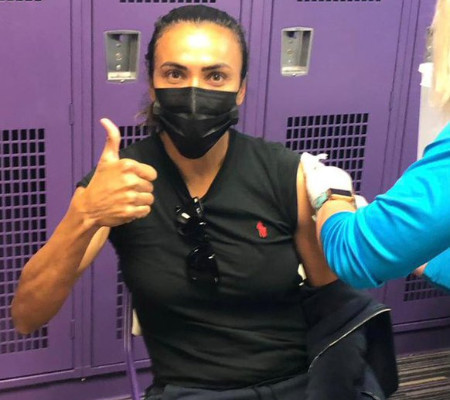 A atacante brasileira Marta, foi uma das pessoas que nesta segunda-feira recebeu o imunizante para se proteger do copronavírus. Ela foi imunizada na Florida (Estados Unidos) junto com outras companheiras de sua equipe, o Orlando City, segundo informações da Agência Brasil.