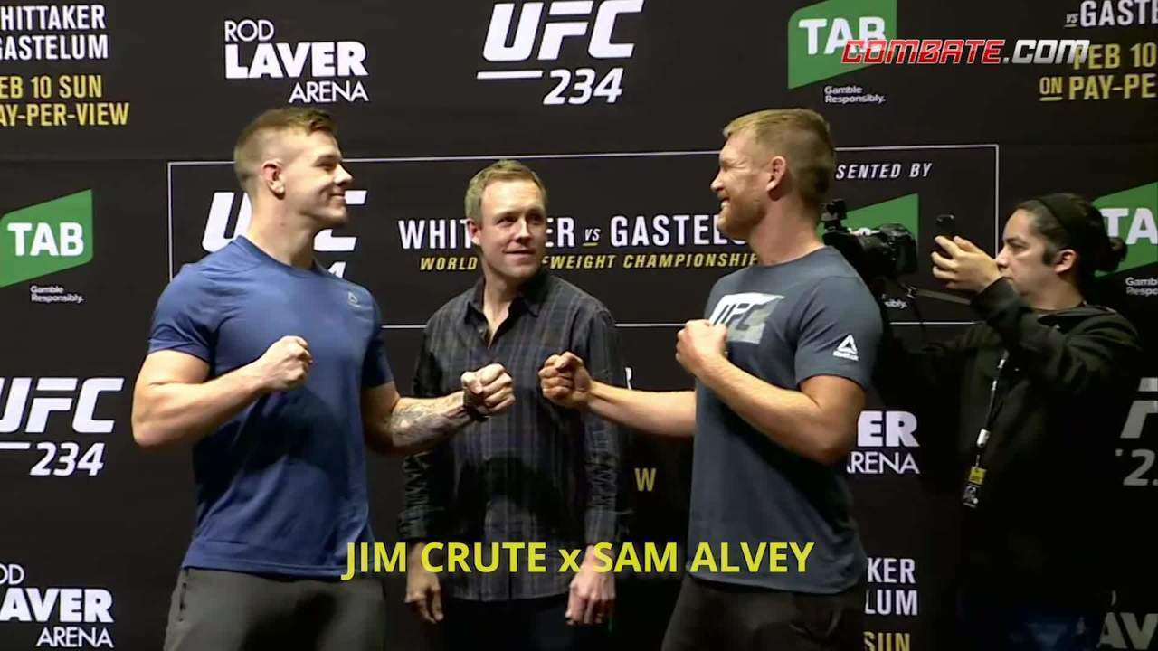 A encarada que mais chamou a atenção foi a de Jim Crute e Sam Alvey, que se enfrentam no peso-meio-pesado. Entre sorrisos dos dois lados, o australiano brincou apertando o peito do adversário, que respondeu indo nas “regiões baixas” de Crute e arrancando risadas dos jornalistas.