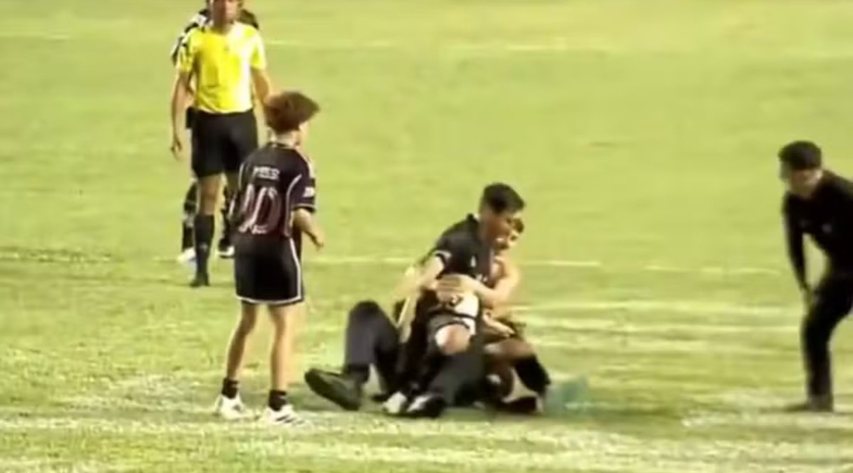 Depois de converter um pênalti decisivo, o astro argentino acabou derrubado no gramado durante uma invasão de torcedores. No momento da confusão, fãs correram em direção ao jogador, enquanto seguranças tentavam protegê-lo, o que resultou na queda do camisa 10.