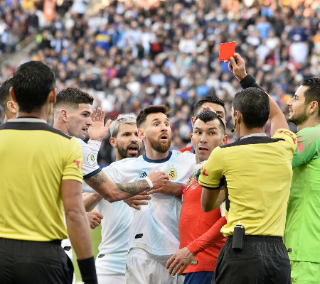 Sim, é real, e só pela segunda vez na carreira! Depois de um lance na linha de fundo com o zagueiro Medel, o craque argentino foi duramente cobrado pelo rival, que encostou a cabeça e o peito no argentino. O árbitro Mario Díaz de Vivar, no desespero, acabou expulsando os dois – ainda que Messi mal tenha reagido às provocações de Medel. O árbitro não quis saber nem do VAR e manteve a decisão, para protesto dos torcedores na Arena Corinthians. Com o vermelho, Messi ainda vai perder a primeira partida da Argentina nas Eliminatórias para a Copa de 2022, em março próximo.