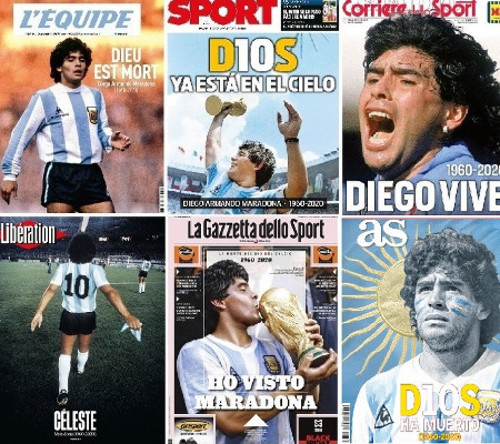 Falecimento do ídolo argentino é destaque em todo o mundo e domina a imprensa esportiva