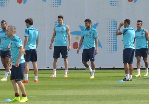 O treinamento desta sexta foi aberto aos jornalistas somente nos primeiros 15 minutos. Neles, Neymar participou da roda de bobinho no mesmo grupo de Messi e atuou com disposição e sorriso no rosto.