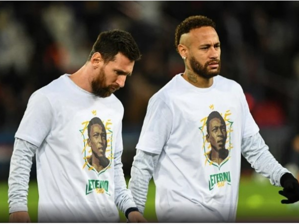Neymar e Messi juntos em homenagem do PSG para Pelé