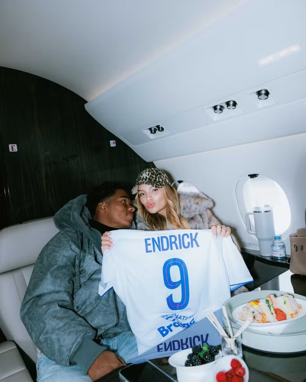 Endrick, de 19 anos, e a esposa Gabriely Miranda, de 23, chegaram à França nesta sexta-feira (26) para dar início a uma nova etapa da carreira do atacante. O casal registrou a viagem em um jatinho particular e compartilhou fotos nas redes sociais, celebrando a mudança com a legenda “nova casa”.