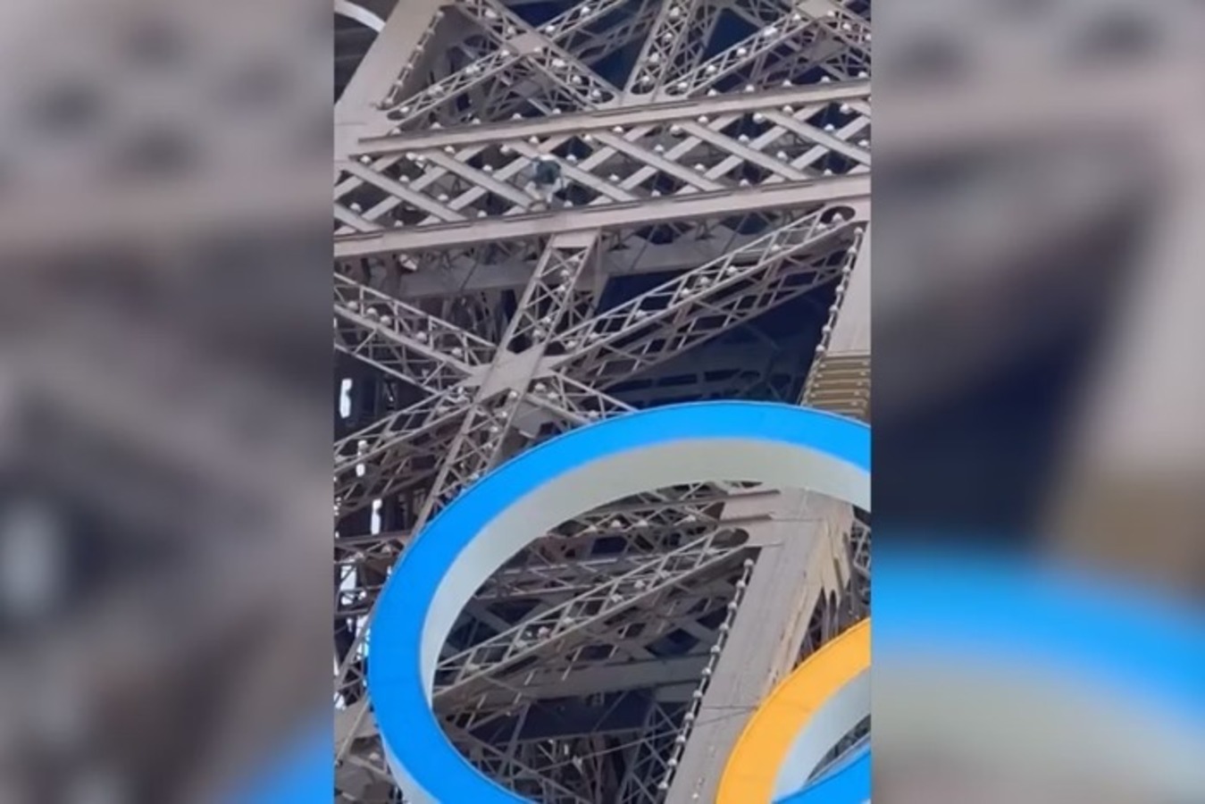 Homem escala Torre Eiffel horas antes do encerramento das Olimpíadas | Foto: Reprodução