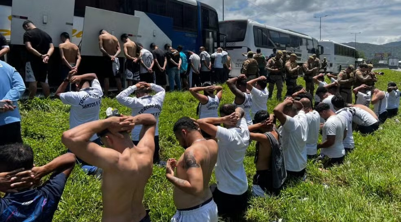 Uma confusão entre torcedores de Santos e Internacional paralisou a BR-101 na manhã desta quinta-feira (data não informada) em Itapema, no Litoral Norte de Santa Catarina. Segundo a Polícia Rodoviária Federal (PRF), integrantes de uma torcida organizada do Santos realizaram uma emboscada contra um ônibus que transportava torcedores do Inter. A ação deixou seis pessoas feridas e resultou na prisão de 10 suspeitos.