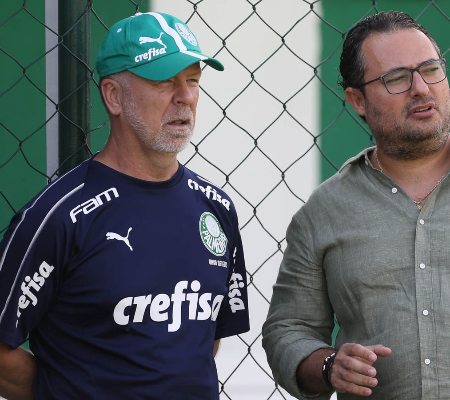Mano Menezes ao lado de Alexandre Mattos na Academia de Futebol — Foto: Cesar Greco / Ag. Palmeiras
