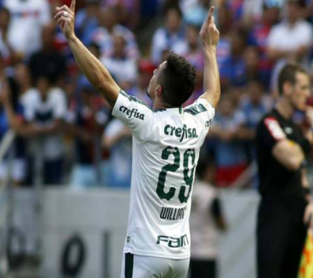 O Palmeiras venceu o Fortaleza por 1 a 0 na tarde deste domingo, no Castelão, e se manteve forte na caça ao Flamengo, líder do Brasileirão – a distância é de três pontos. Willian, no começo do segundo tempo, fez o gol do jogo. O resultado confirma os 100% de aproveitamento do técnico Mano Menezes no comando alviverde: quatro vitórias em quatro jogos. O Fortaleza, pelo contrário, chega a três partidas sem vencer na competição e continua atento à proximidade da zona de rebaixamento. As informações são do Globo Esporte.