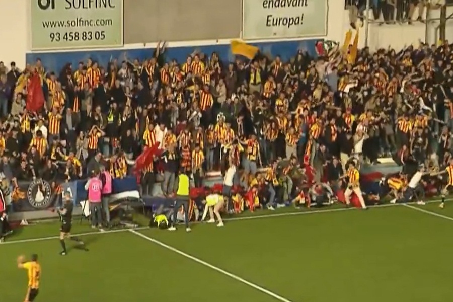 O clássico entre CE Europa e Sant Andreu, disputado no último domingo (17), foi marcado por um incidente grave no Nou Sardenya, em Barcelona. Durante a comemoração do quinto gol do Sant Andreu, logo no início do segundo tempo, a cerca da arquibancada visitante cedeu, resultando na queda de torcedores em direção ao campo. Uma pessoa ficou ferida, de acordo com o jornal português A Bola.