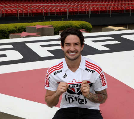 Alexandre Pato veste a camisa do São Paulo no Morumbi — Foto: Rubens Chiri / saopaulofc.net