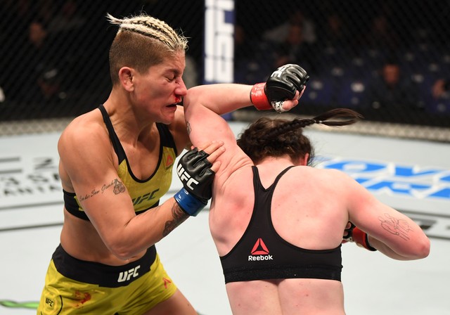 O olho incrivelmente inchado e ensanguentado de Molly McCann é prova de que a batalha foi duríssima. Mas uma quase finalização no primeiro round e um conjunto de golpes mais consistentes ao longo de todo o confronto garantiram à inglesa a vitória por decisão unânime dos juízes (triplo 29-28) sobre Priscila Pedrita na única luta feminina do UFC Londres. Esta foi a primeira vitória de McCann no Ultimate, enquanto Pedrita segue sem triunfos em duas lutas na organização.