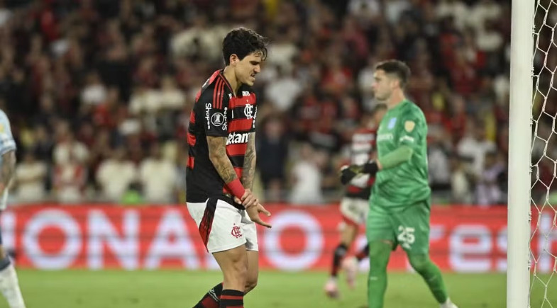 Aos três minutos do segundo tempo, Pedro e Santiago Sosa, volante do Racing, se chocaram em uma disputa de bola. O atacante brasileiro tentou se proteger ao esticar o braço, mas acabou levando a pior no contato. Mesmo com dores visíveis, permaneceu em campo até os 26 minutos da etapa final, sendo substituído por Bruno Henrique após ser atendido algumas vezes à beira do gramado.