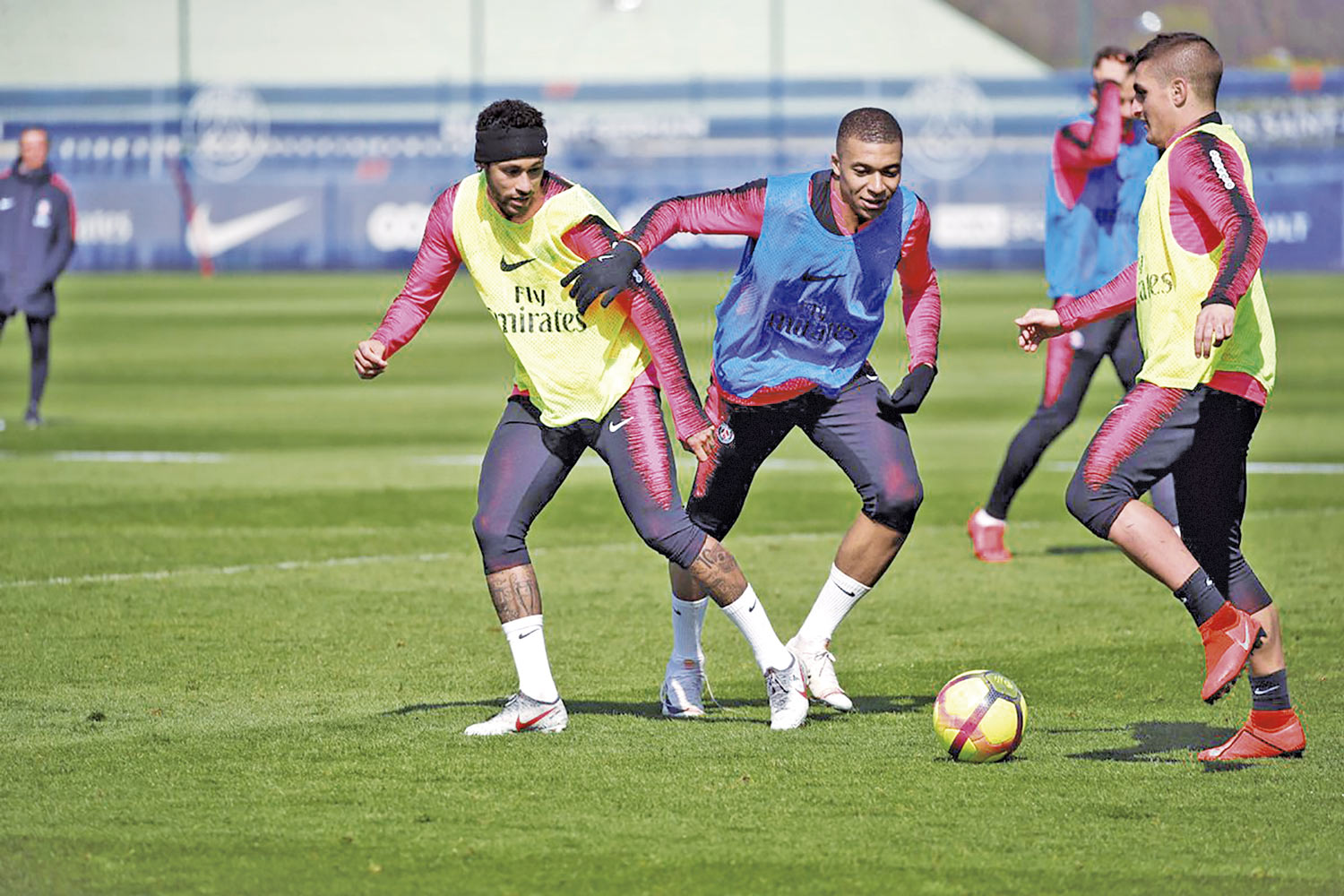 Através de sua conta oficial no Twitter, o PSG publicou uma foto do jogador disputando a bola ao lado de Mbappé e Verratti no coletivo desta tarde.