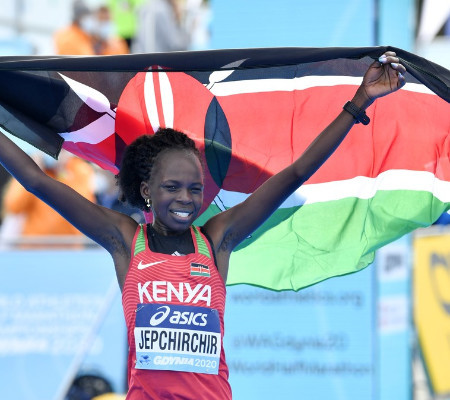 Peres Jepchirchir, queniana de 27 anos, não só venceu o Campeonato Mundial de Meia Maratona neste sábado, em Gdynia, na Polônia, como quebrou mais uma vez o recorde mundial da prova. Ela correu os 21km em 1h05min16s, melhorando ainda mais o próprio tempo estabelecido em setembro, em Praga, na República Tcheca (1h05min34s).