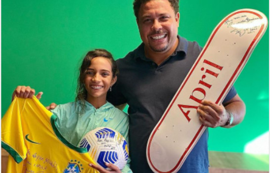 Ela só tem 13 anos e já fez história pelo skate brasileiro. Não é por acaso que Raíssa Leal se tornou fenômeno, assim como o ídolo que ela aproveitou para tietar. Ou será que foi ele que ganhou com esse encontro? A mais jovem medalhista olímpica posou ao lado de Ronaldo Fenômeno. Os dois se conheceram nesta quarta(1).