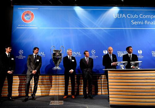 Os dois times espanhóis jogam a primeira partida em casa. O Atlético abre as semifinais no Vicente Calderón contra o Chelsea no dia 22 de abril, na terça-feira seguinte ao Domingo de Páscoa. Na quarta-feira, o Real recebe o Bayern, no Santiago Bernabéu. As decisões das vagas nas finais serão em Munique e Londres, uma semana depois, dias 29 e 30, respectivamente. A disputa do título está marcada para 24 de maio, no Estádio da Luz, do Benfica, em Lisboa.
