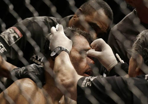 O americano encaixou dois cruzados de direita no rosto de Mintouro. Em seguida, acertou um upper (gancho) que deixou o brasileiro zonzo. Enquanto tentava se manter em pé, Minotouro foi atingido por outros dois uppers violentos, que o fizeram desabar no ringue.